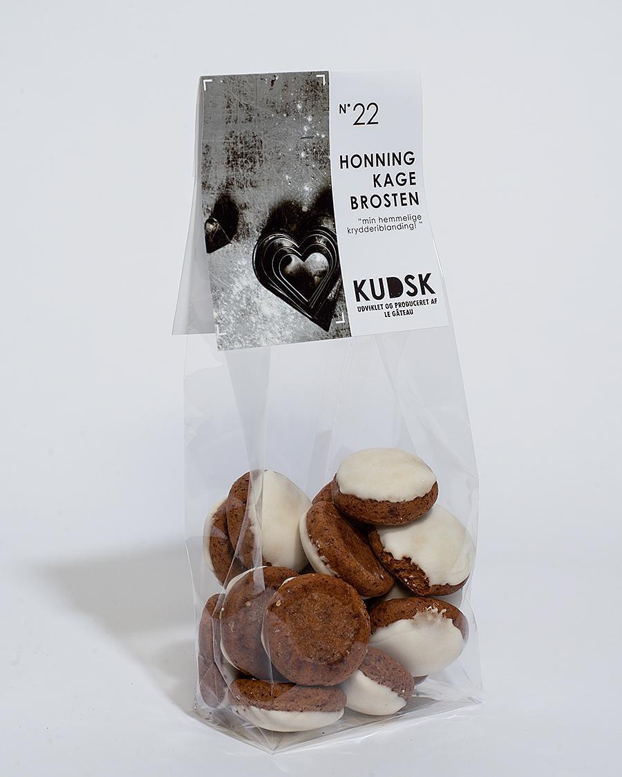 Honningkage brosten er bagt af ren honningkagedej og er efter bagning pyntet med en sprød glasur, som er lavet af æggehvide og flormelis.